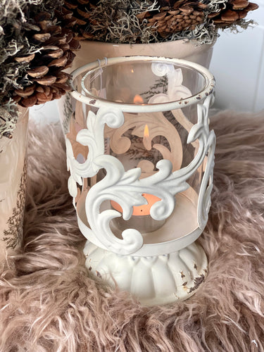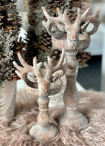 Bougeoir cerf en résine brun vieilli PM H24xL12cm
