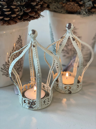 Photophore ajouré métallique fleurs antique crème H10xL8cm