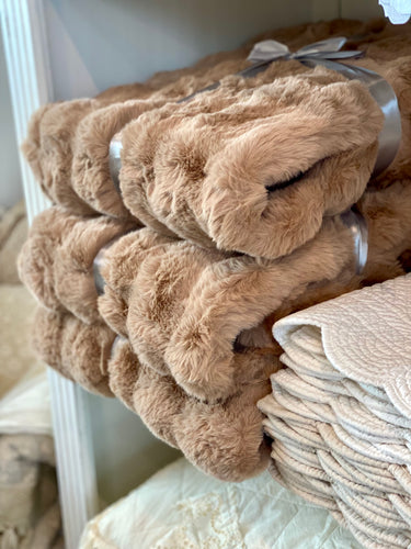 Plaid tête de cerf fourrure/teddy blanc/marron 130x170cm