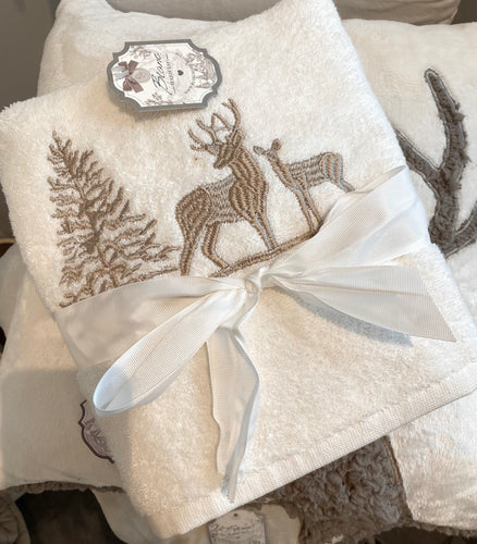 Set 2 essuies blanc ( 1 essuie main 60x110cm- 1 essuie invité 40x60cm)