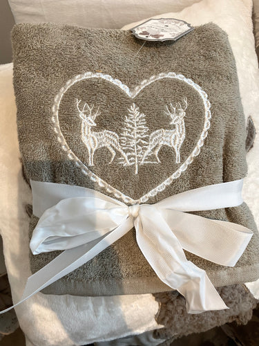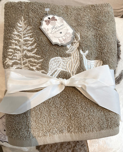 Set 2 essuies marron ( 1 essuie main 60x110cm- 1 essuie invité 40x60cm)