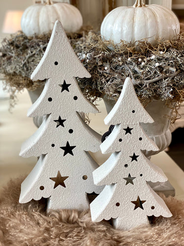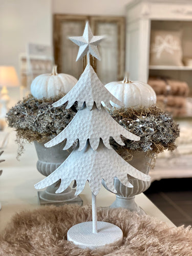 Sapin métallique gris pointe étoile PM H55xL29cm