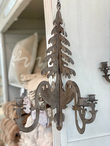Suspension lustre bougeoir métal brun vieilli GM H83xL37cm