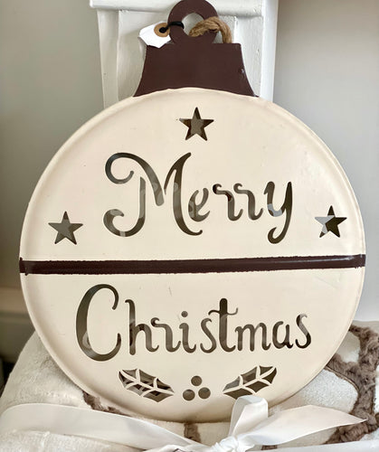 Grande boule métallique Merry Christmas crème/brun 30cm