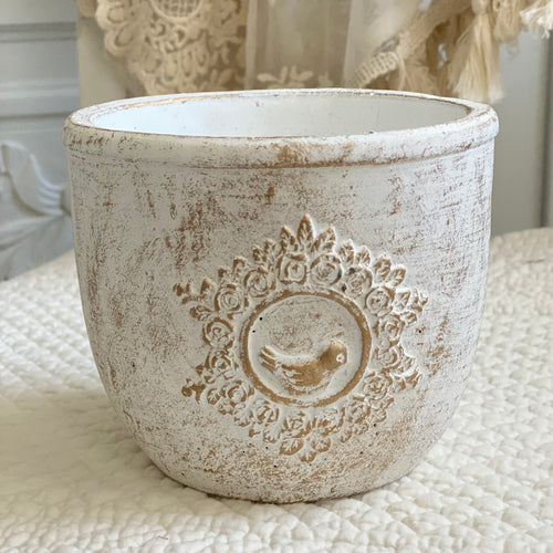 Bougeoir métallique antique crème PM H19xL9cm ( avec garniture et noeud dentelle compris)