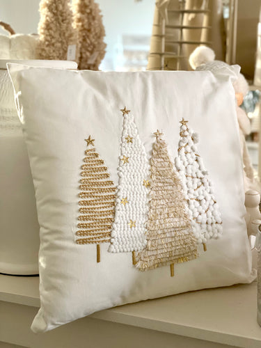 Coussin sapins blanc/doré 45x45cm (déhoussable, intérieur compris)