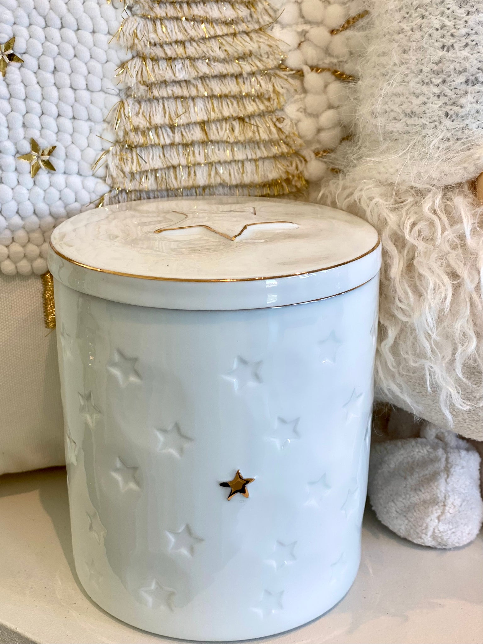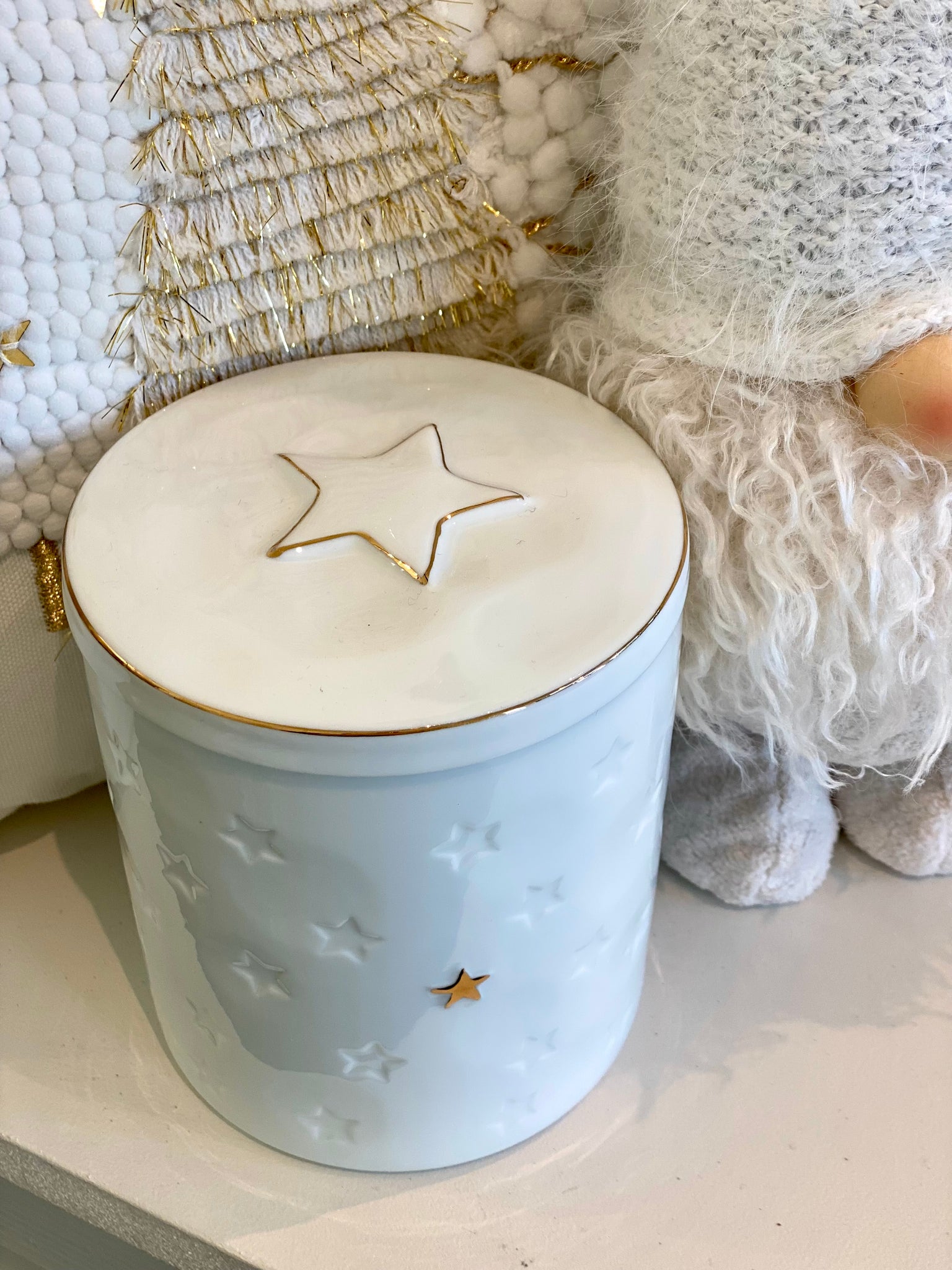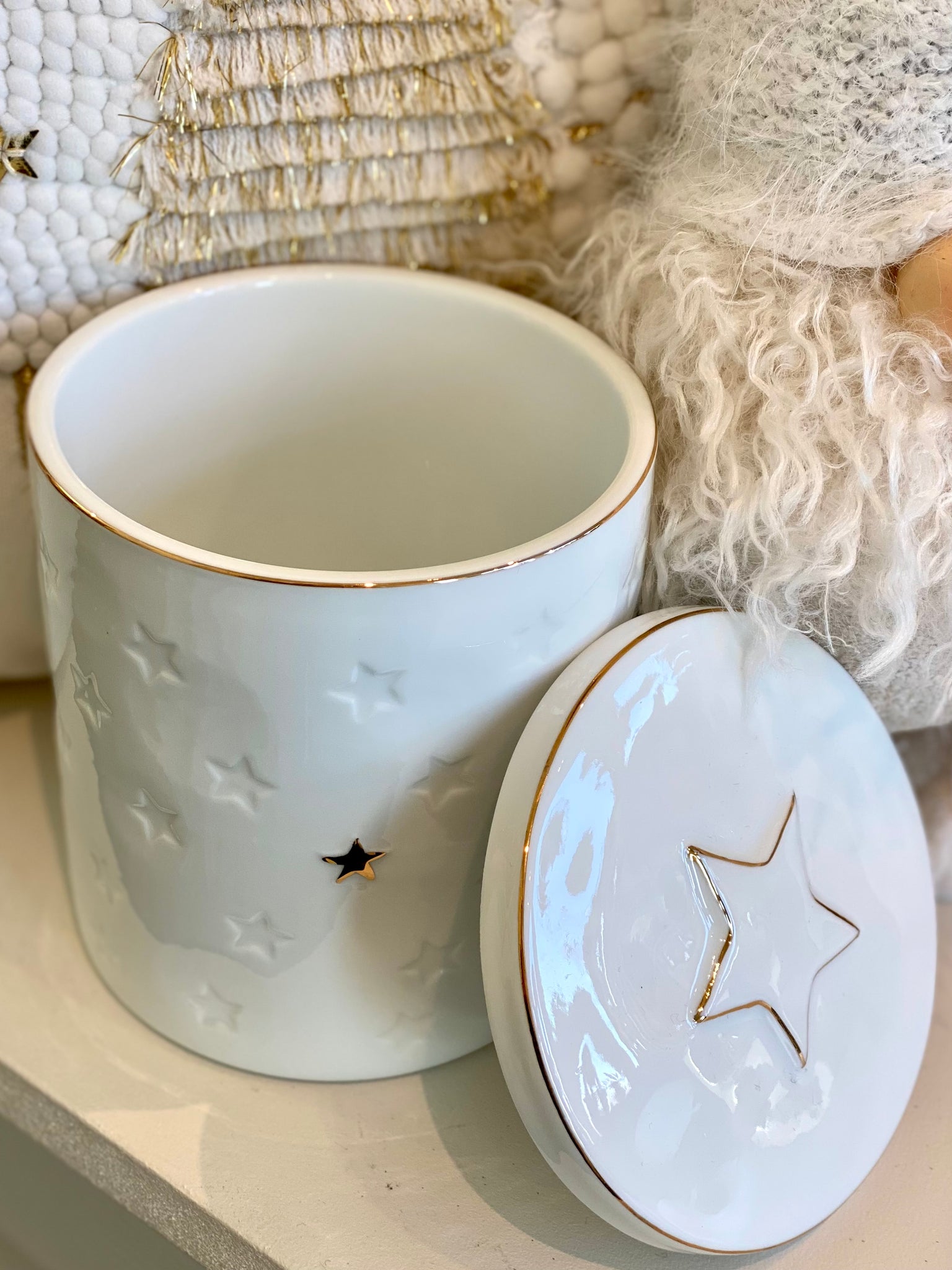 Boîte ronde céramique blanc/doré H13xL11cm