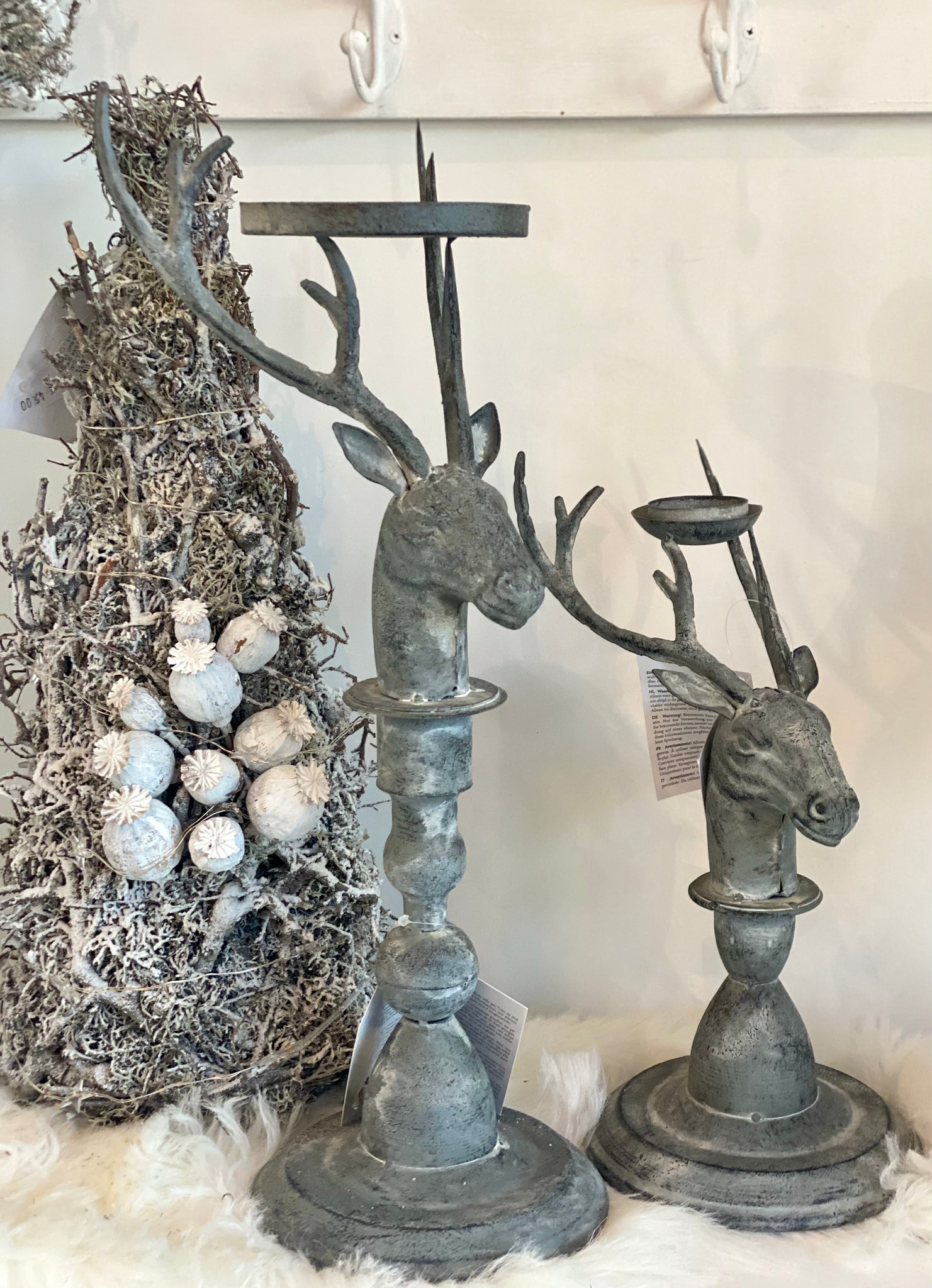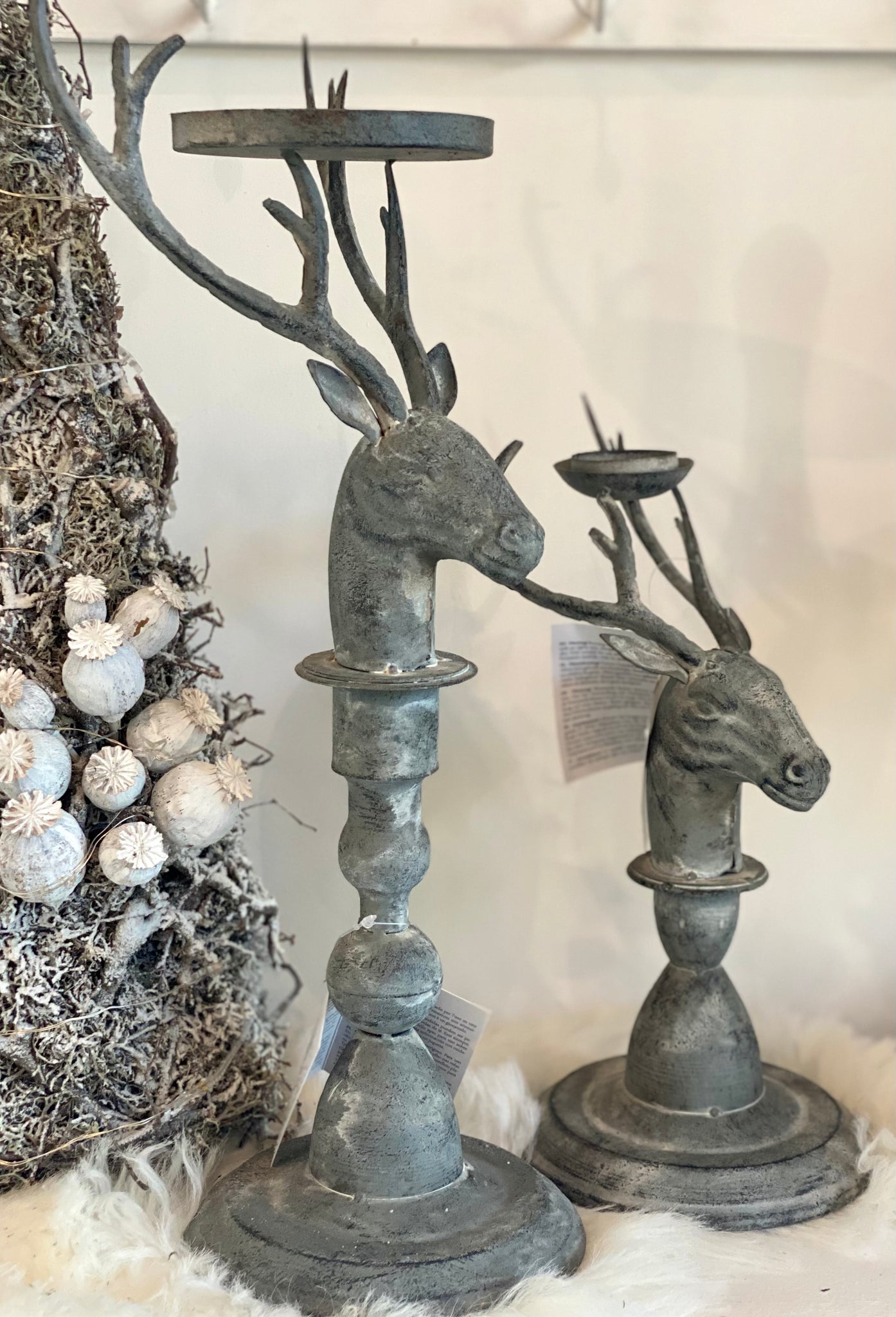 Bougeoir métallique cerf gris patiné H30xL17cm