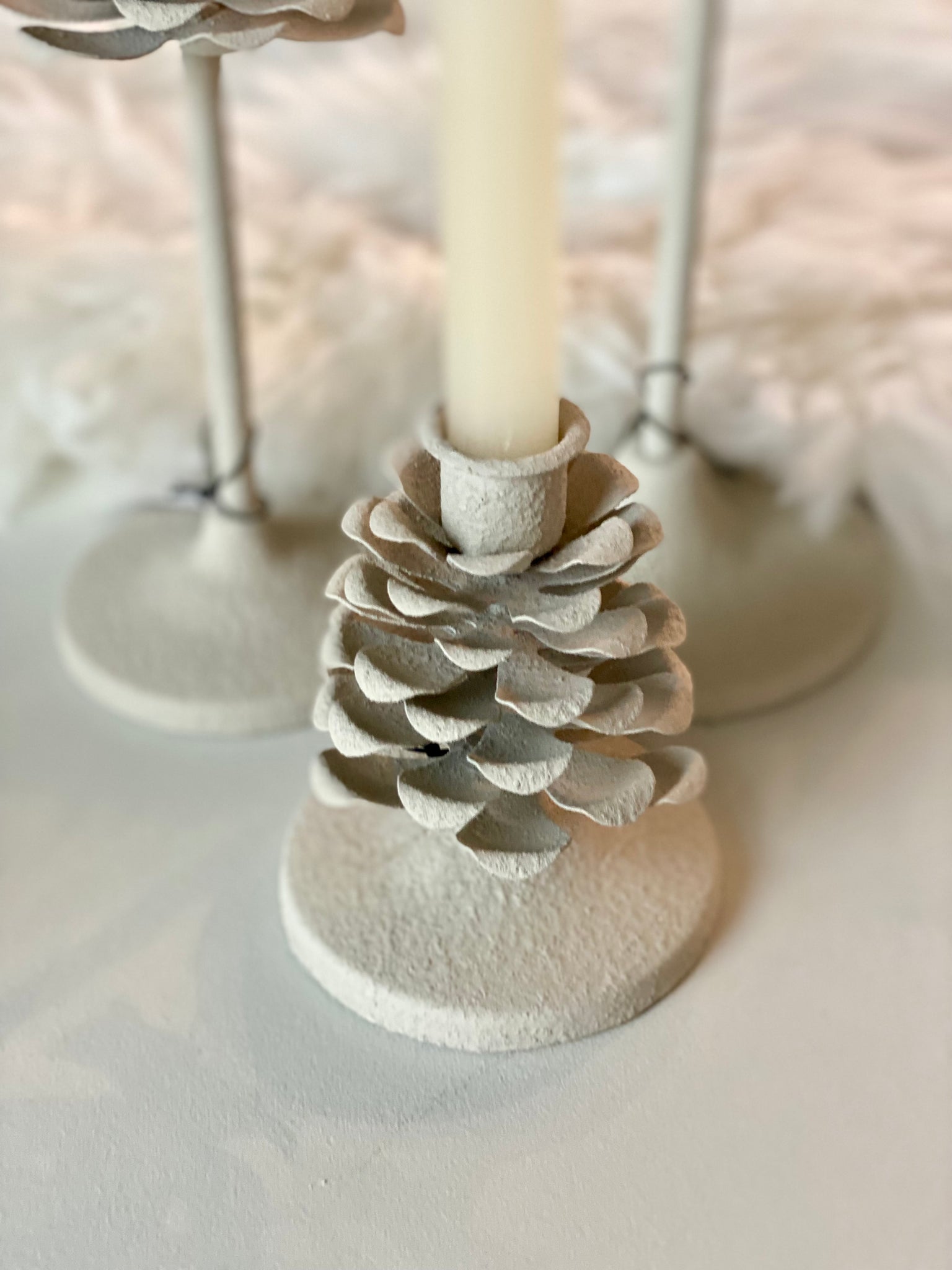 Bougeoir pomme de pin métal beige PM H12xL10cm
