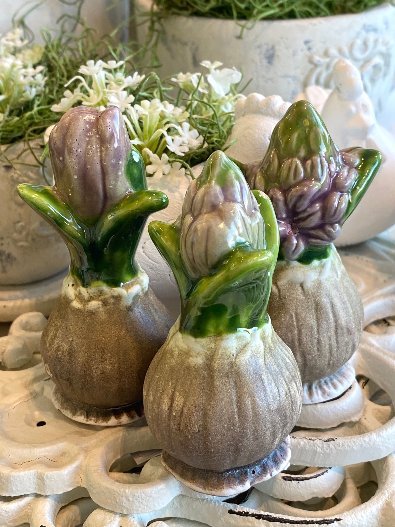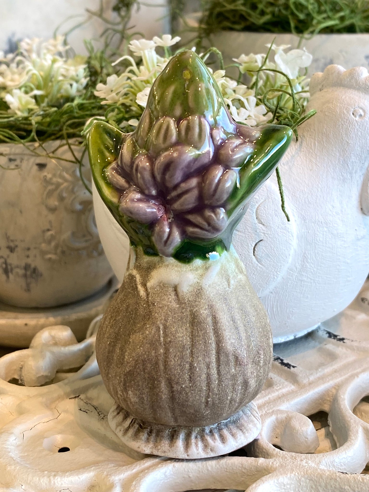 Bulbe fleur céramique parme H9xL5cm
