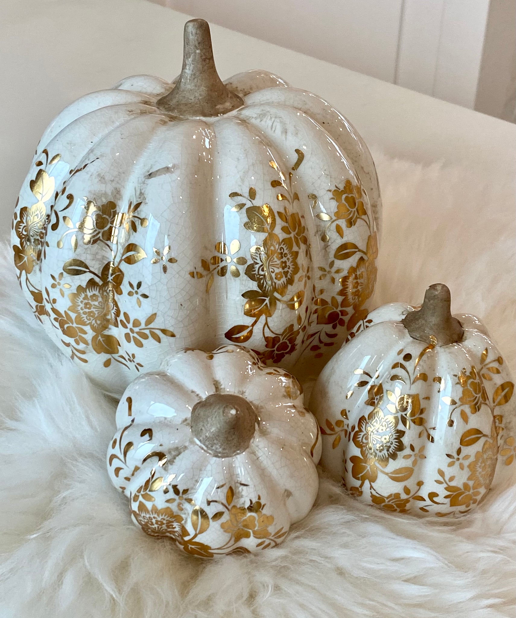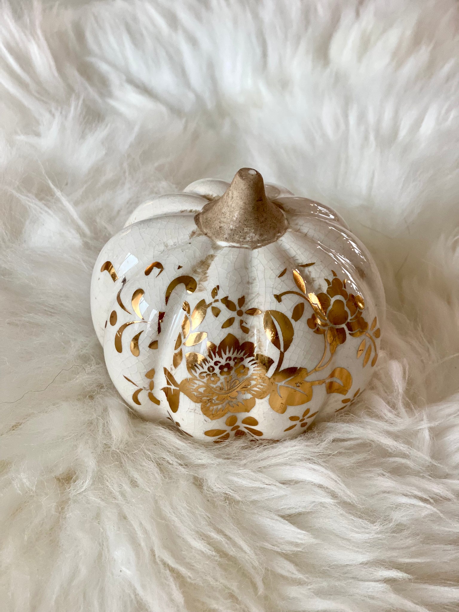 Citrouille PM céramique blanc cassé /doré H8xL9cm