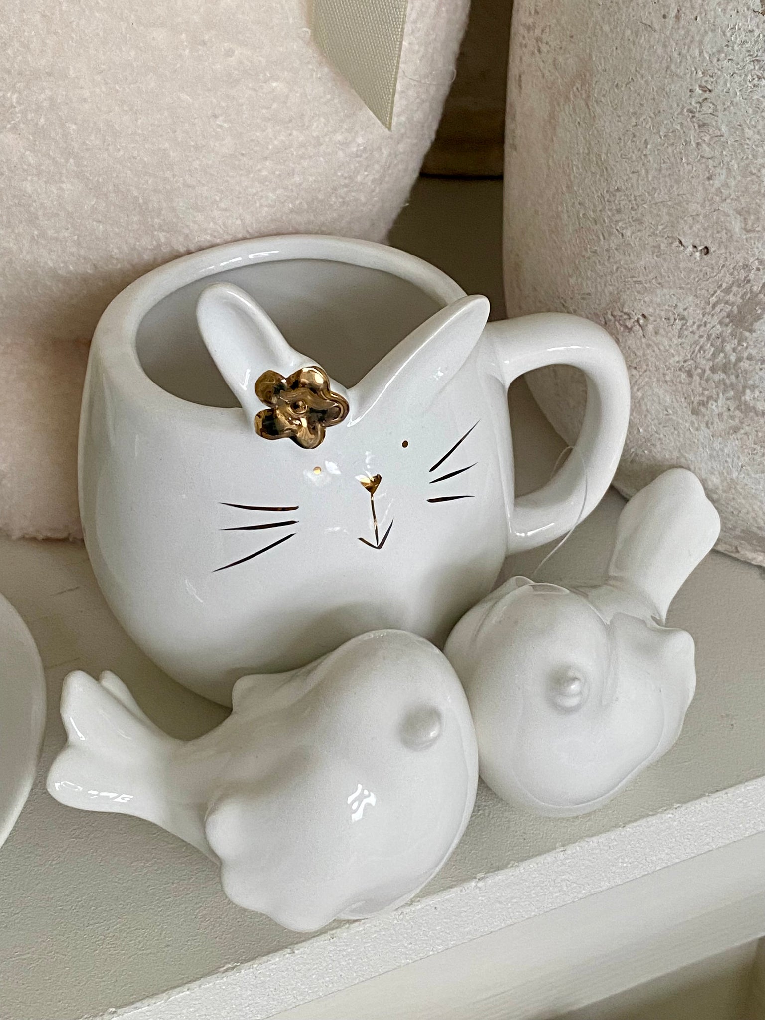 Couple d’oiseaux en céramique blanche H7xL9cm