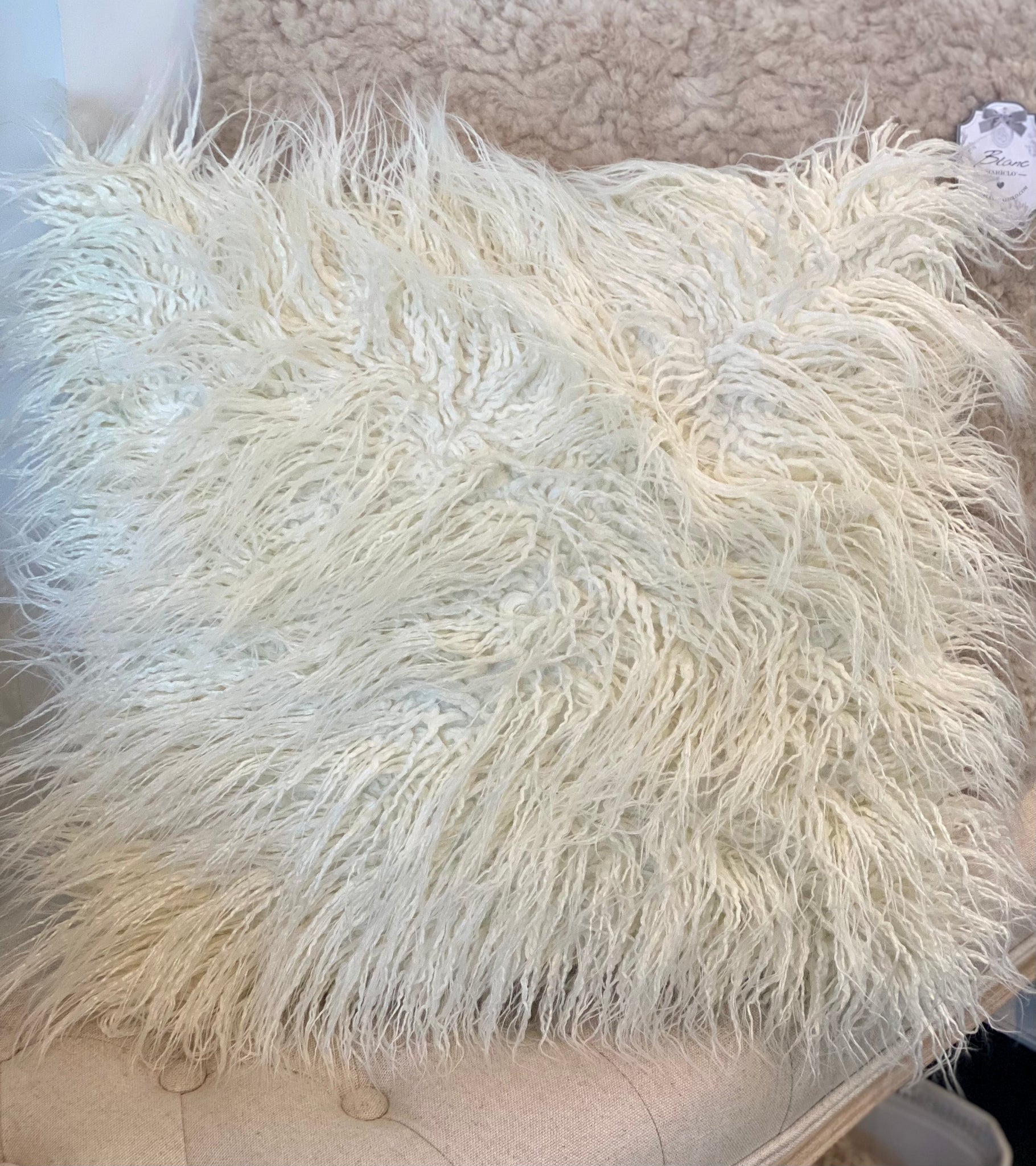 Coussin poilu blanc cassé 45x45cm