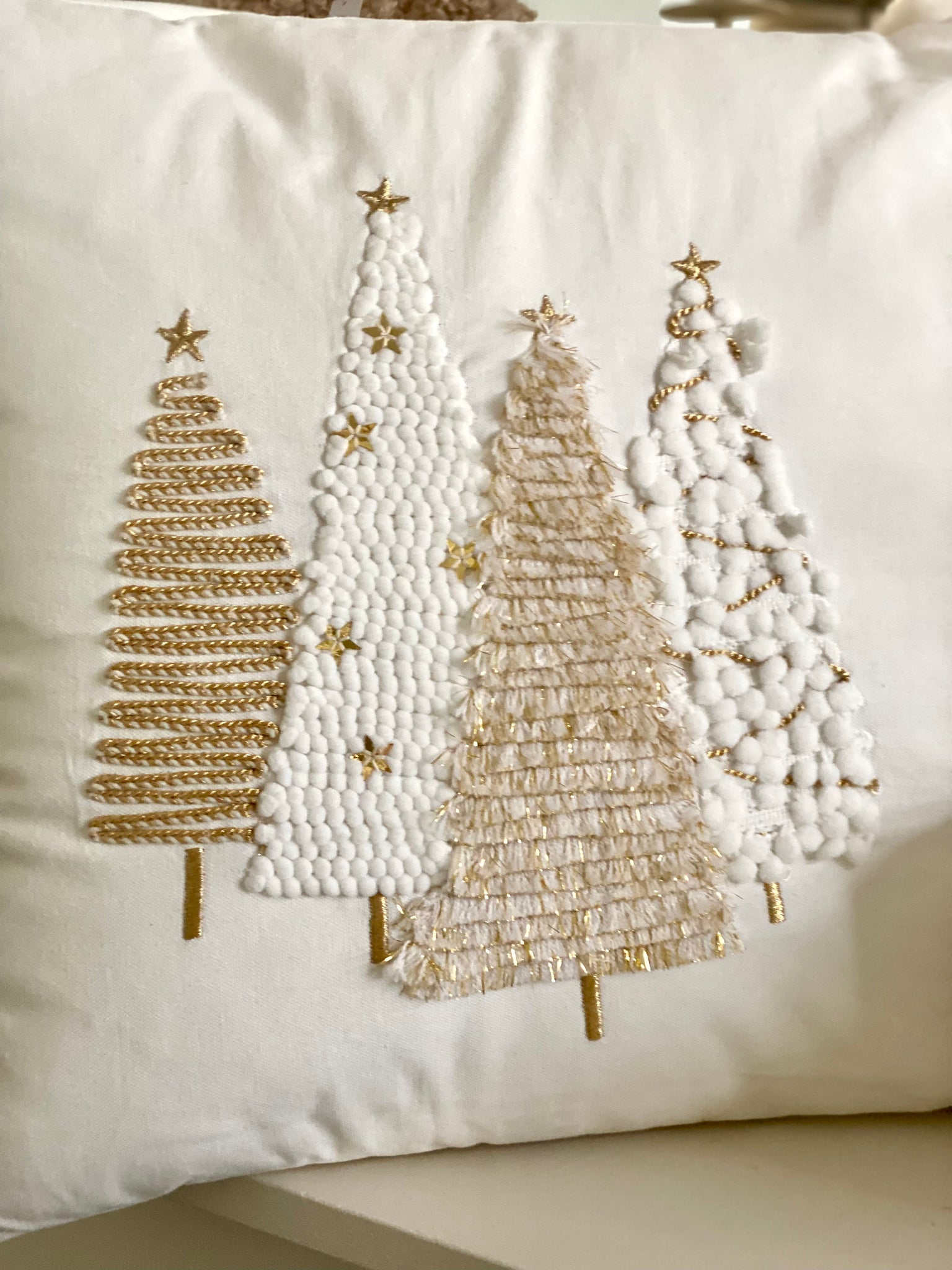Coussin sapins blanc/doré 45x45cm (déhoussable, intérieur compris)