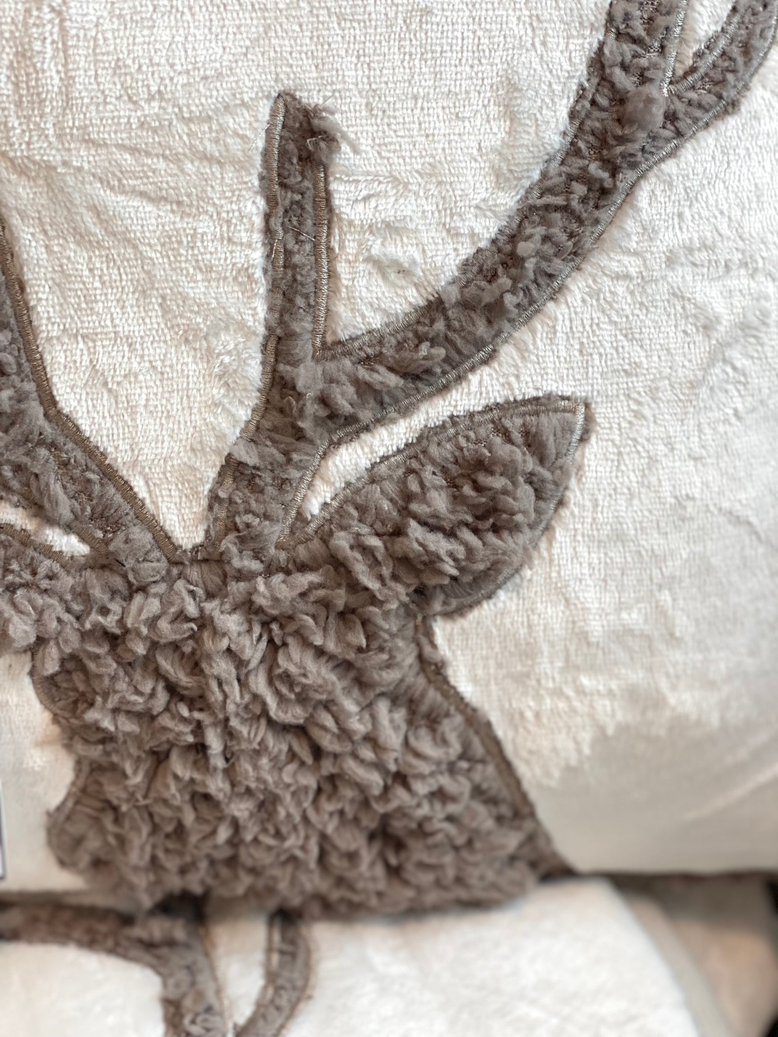 Coussin tête de cerf fourrure/teddy blanc/ marron 45x45cm ( déhoussable, intérieur compris)