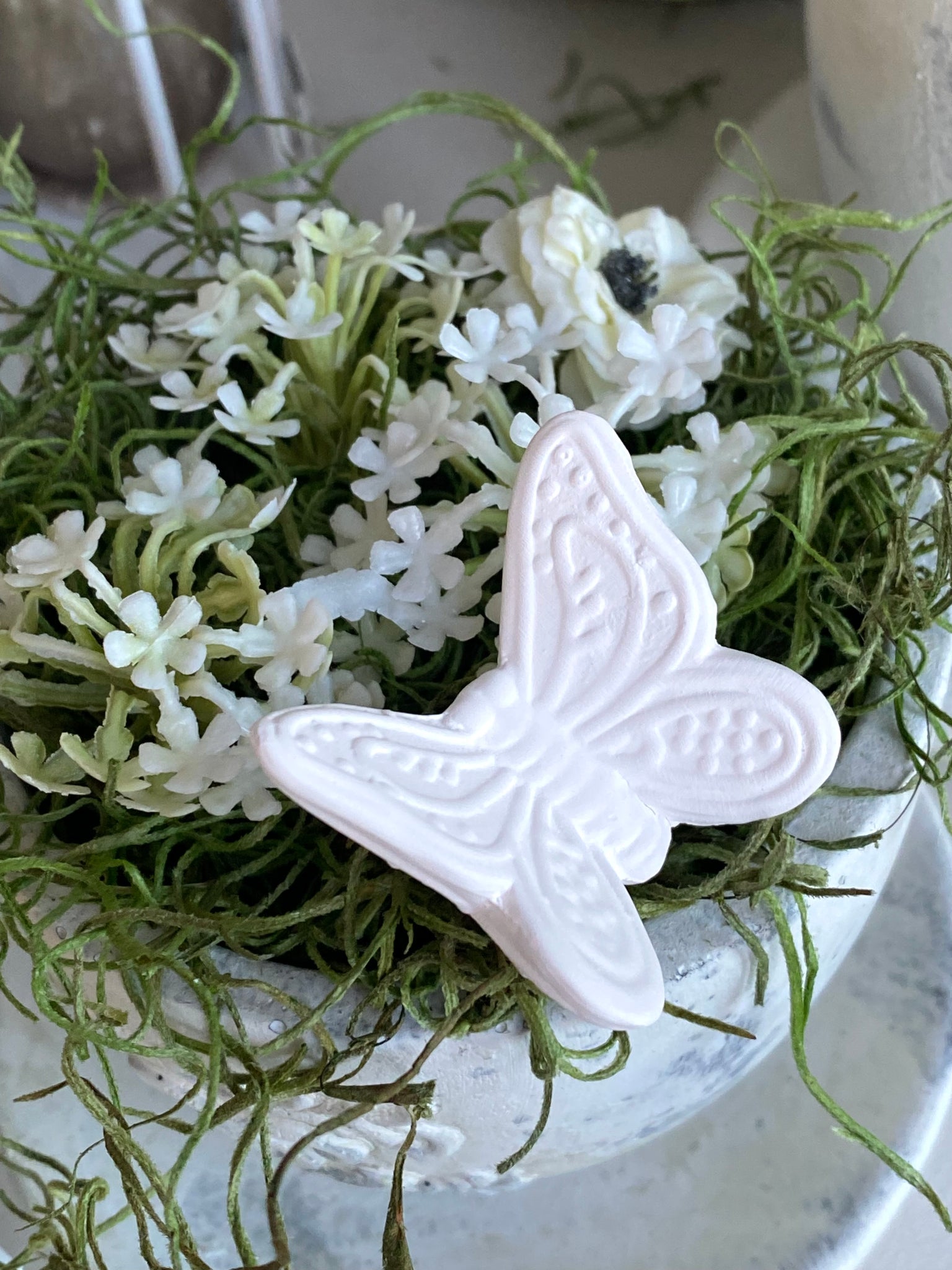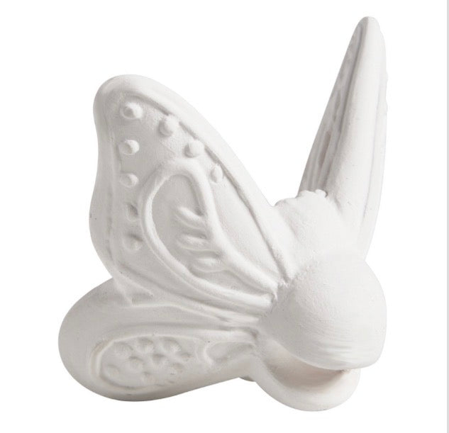 Papillon à poser sur verre ou autre en biscuit de céramique blanche H4xL3cm