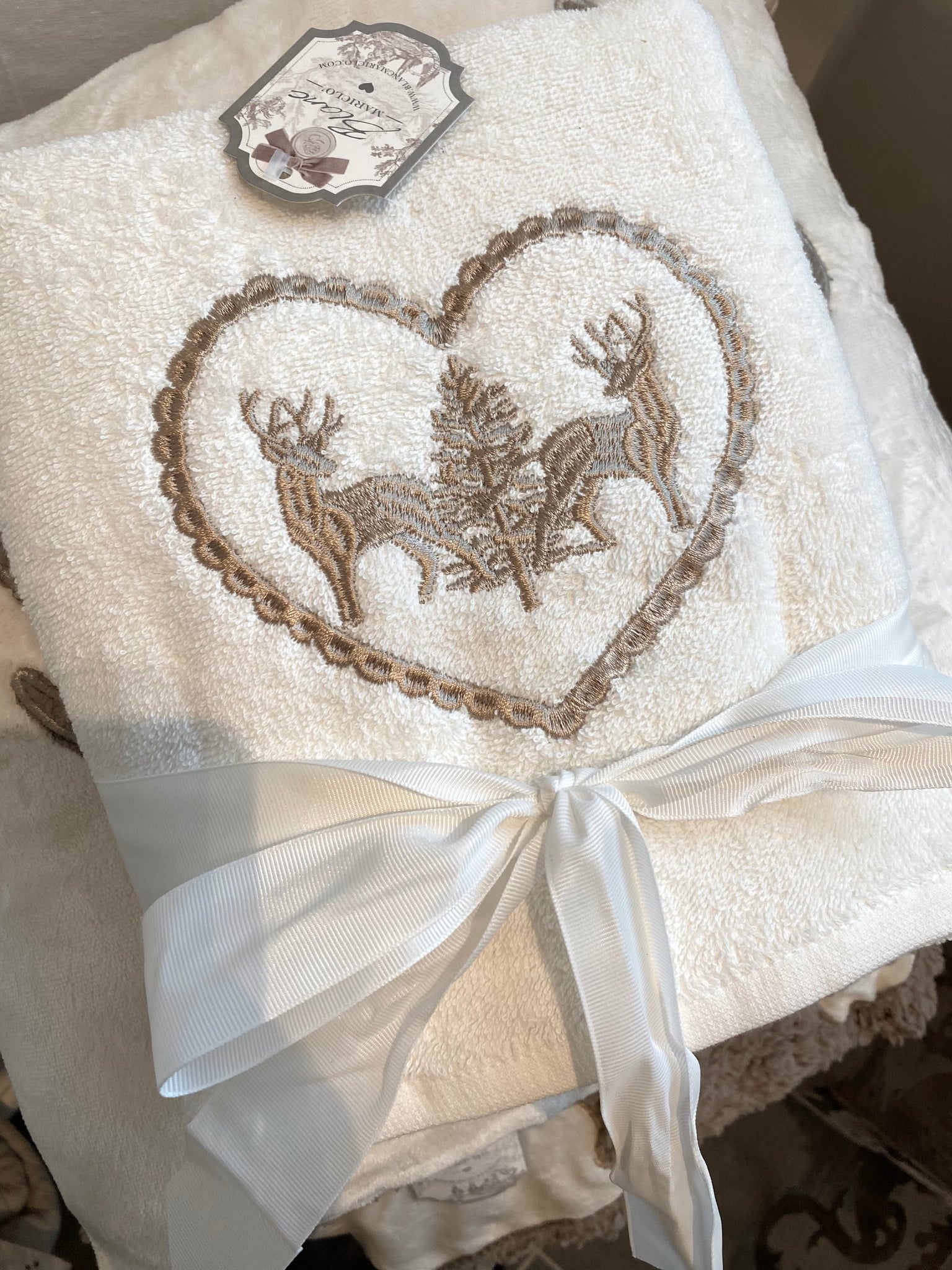 Set 2 essuies blanc ( 1 essuie main 60x110cm- 1 essuie invité 40x60cm)