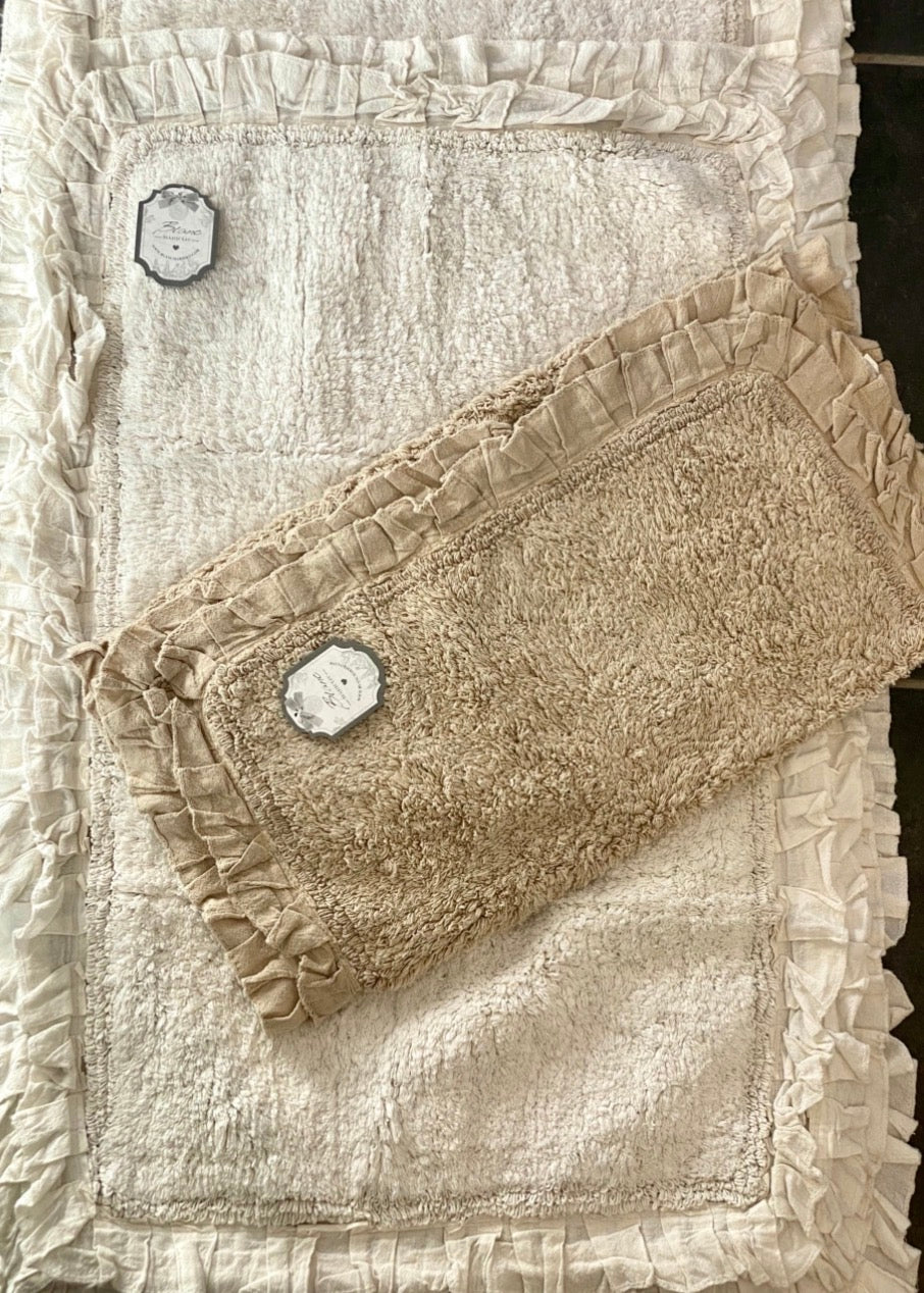 Tapis de bain ovale coton blanc cassé 50x80cm